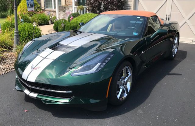 This is Corvette #7 for me. It all started in 1977 when I bought my first Corvette. It was a competition Orange T-top 4-speed L82 coupe. That started it. Since then, I’ve owned a ’78, a ’93 40th Anniversary edition, an ’01 coupe, a ‘2010 coupe, a 2012 Grand Sport and this C7. The color is Lime Rock Green. We saw this new color at GM tent at Corvettes at Carlisle in 2013. My better half took one look at the beautiful metallic green paint and told me to get one.