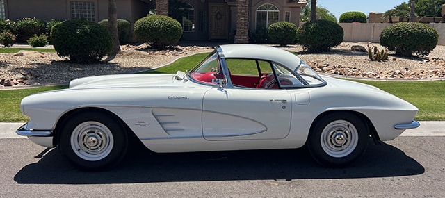 I was Corvette hunting one afternoon and made a phone call to a gentleman who owned a ’73 Convertible. We started talking about all things Corvette, and I mentioned that the one car I had been after was a wrong-motored fuel injected 1960. He casually replied that he happened to have a fuelie Corvette in his garage! A 1961.