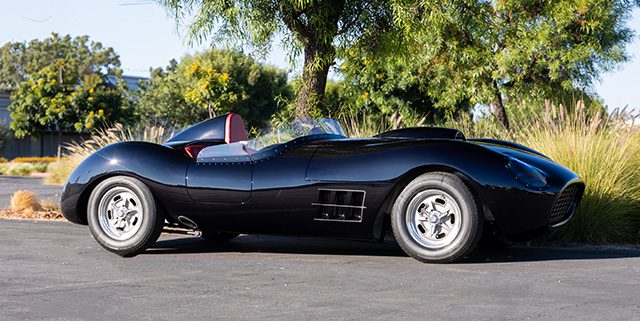 This unique, custom-built sports racer features an aluminum body mounted on a 1956 Chevrolet Corvette frame and running gear. Originally registered in Pennsylvania in 1961 as a “Lister Chevrolet” with a Special Number Plate, it now carries a California title using the 1956 Corvette VIN stamped on the frame. The Pennsylvania brass tag remains affixed to the firewall.