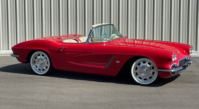 Amazing Build With Street Shop Chassis Torch Red w/Linen Interior, Black Soft Top, 376/430hp LS3, 4-Speed Automatic This stunning ’62 Resto-mod has undergone a no expense spared, frame off-restoration and features an LS engine backed by and automatic transmission, custom leather interior, wheels, frame, and more! Starting with the exterior, Corvette Torch Red was expertly applied and looks two feet deep! The leather interior is courtesy of Al Knoch. It looks fantastic and complements the red exterior perfectly. The body is sitting on a Street Shop Chassis with brakes courtesy of Wilwood. GM wiring harnesses, computers, and brake lines are also utilized. Wheels are by Shop. The LS3 Engine has been dyno tested to 415hp at the rear wheels. All the work was done by J & M Corvette Restorations and there is extensive photo documentation of the build. Fresh restoration, completed in 9/23. |