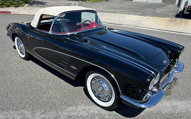 The ’61 presented here is a very original example that has been nicely maintained over the decades. It’s had one repaint in Black, with some minor spruce up of the interior. Mechanically, it’s just had a recent service and it’s ready to drive and enjoy! It comes with the original owner’s kit and some service receipts.