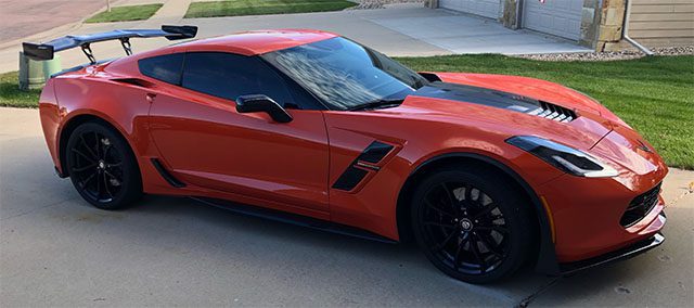 I really loved the Sebring Orange color when it appeared in 2018. I found a brand new 2018 Sebring Orange Grand Sport at our local Chevrolet Dealer and I was going to trade in my 2017 Watkins Glenn Gray Stingray on the Grand Sport. Unfortunately, one of the salesmen took the 2018 out on a test ride, had turned the traction control off, lost control, and totaled it out hitting the overhead bridge support on South I29 interstate here in Sioux Falls ! Found my 2019 Sebring Orange Grand Sport at another Dealer in South Dakota, and at the time just loved the High ZTK wing on the 2019 ZR-1, so just had to do it. Mine is special as I ordered it Carbon Flash black instead of Carbon Fiber black. Just completed it real late this Summer but boy do I get the looks! Thanks!