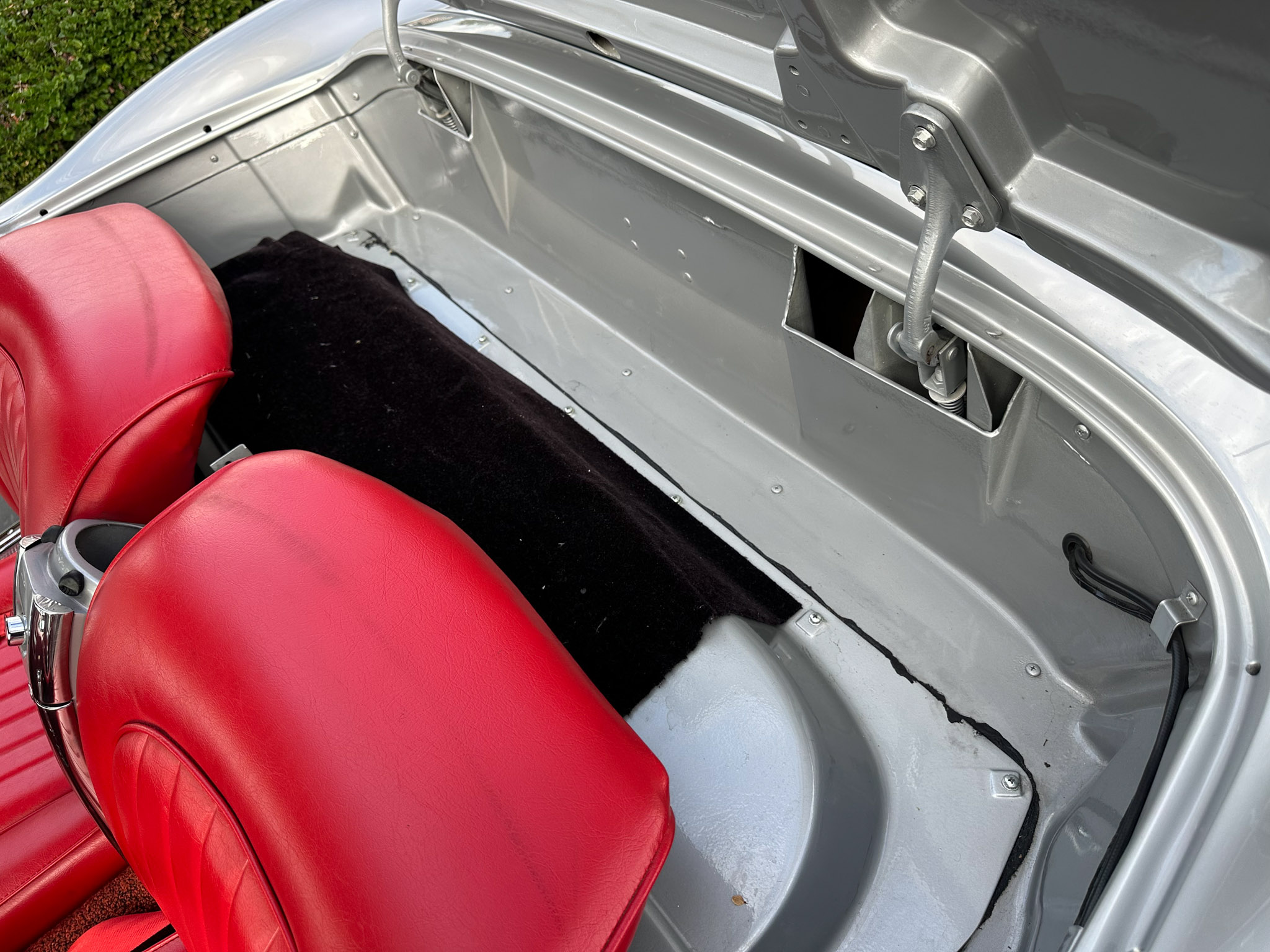 For enhanced drivability, it’s been fitted with power steering and a smaller-diameter, leather-wrapped steering wheel for easier entry and maneuverability. It also features a new white soft top and wide whitewall radial tires that complete its timeless look.