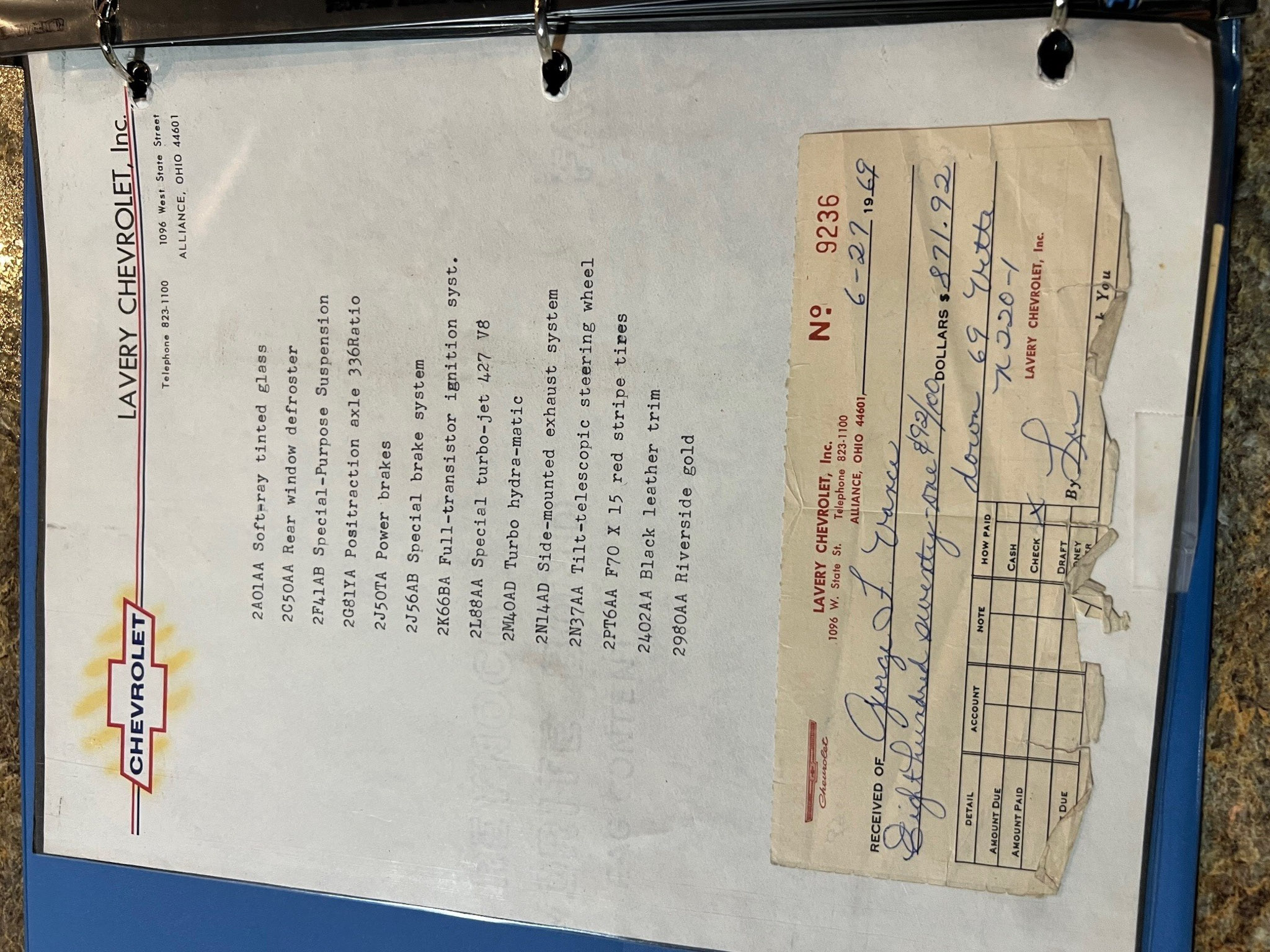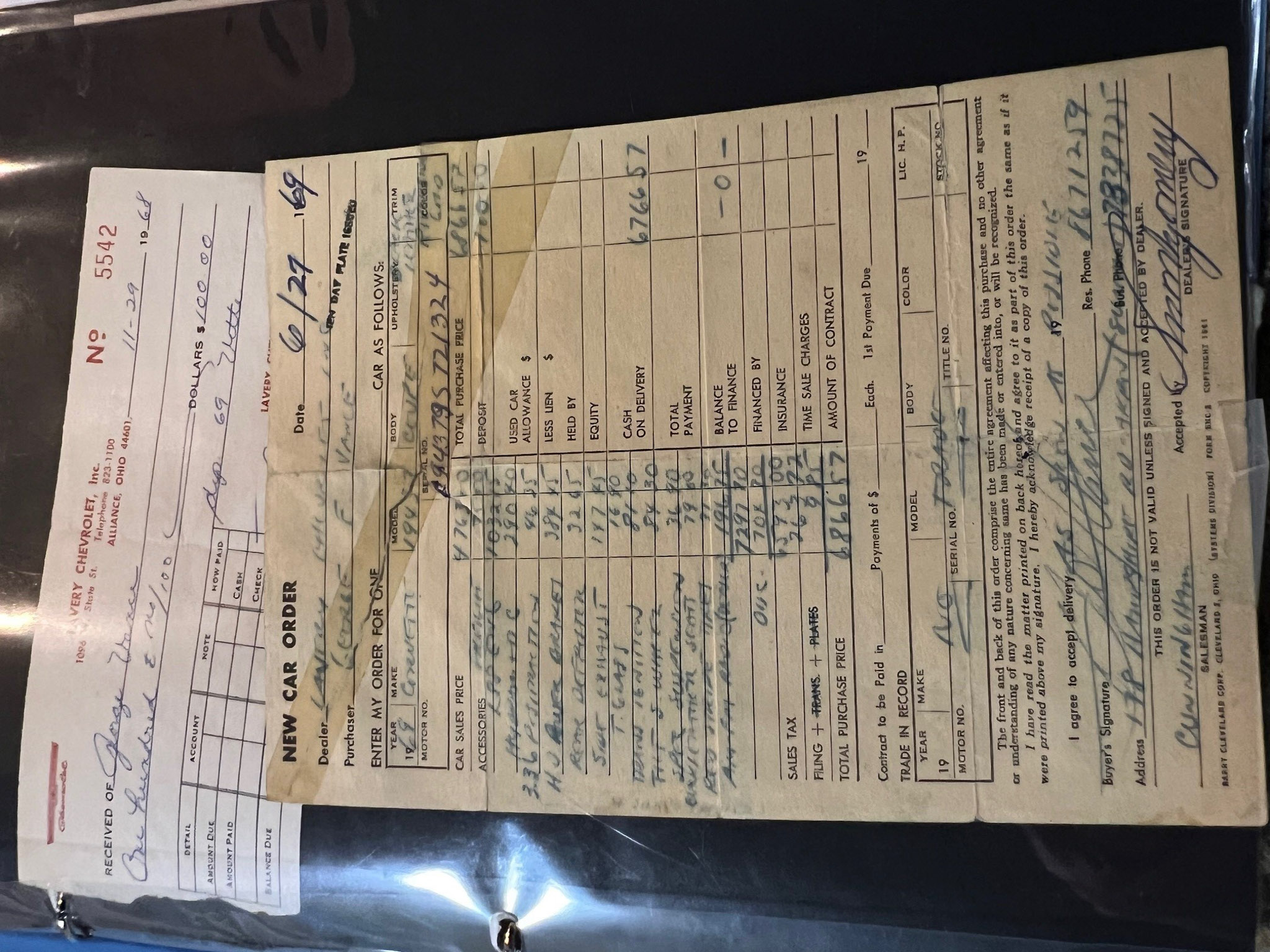With its factory rating of 430 hp—but delivering an actual 550 hp on race fuel—this L88 Corvette, affectionately known as “Goldie,” captures the true spirit of the American go-fast mentality. The car’s unmatched originality includes its original engine, automatic transmission, side pipes, and black leather interior, all augmented by a comprehensive trove of factory documentation—even the original buyer’s deposit receipt from December 1968.