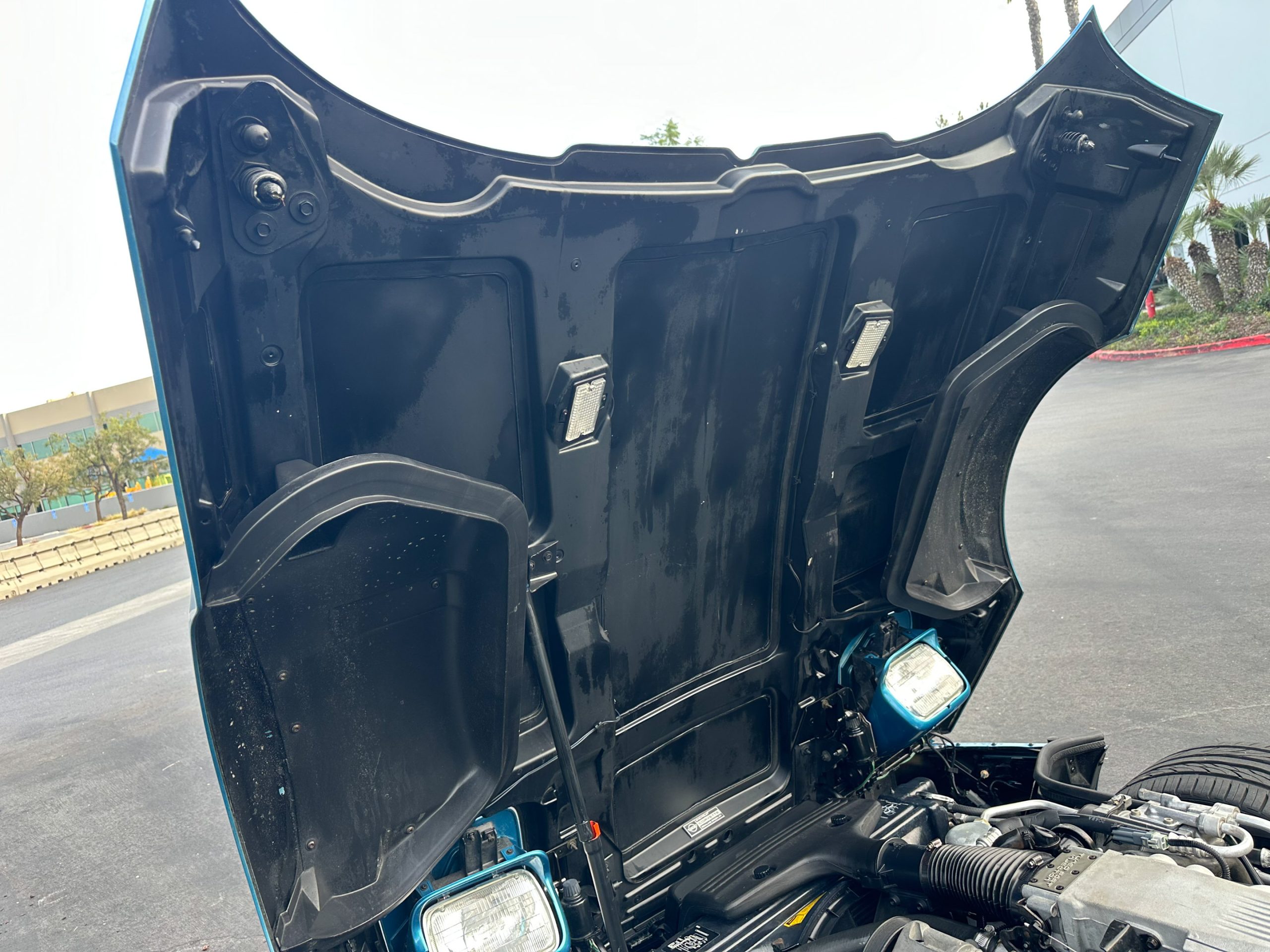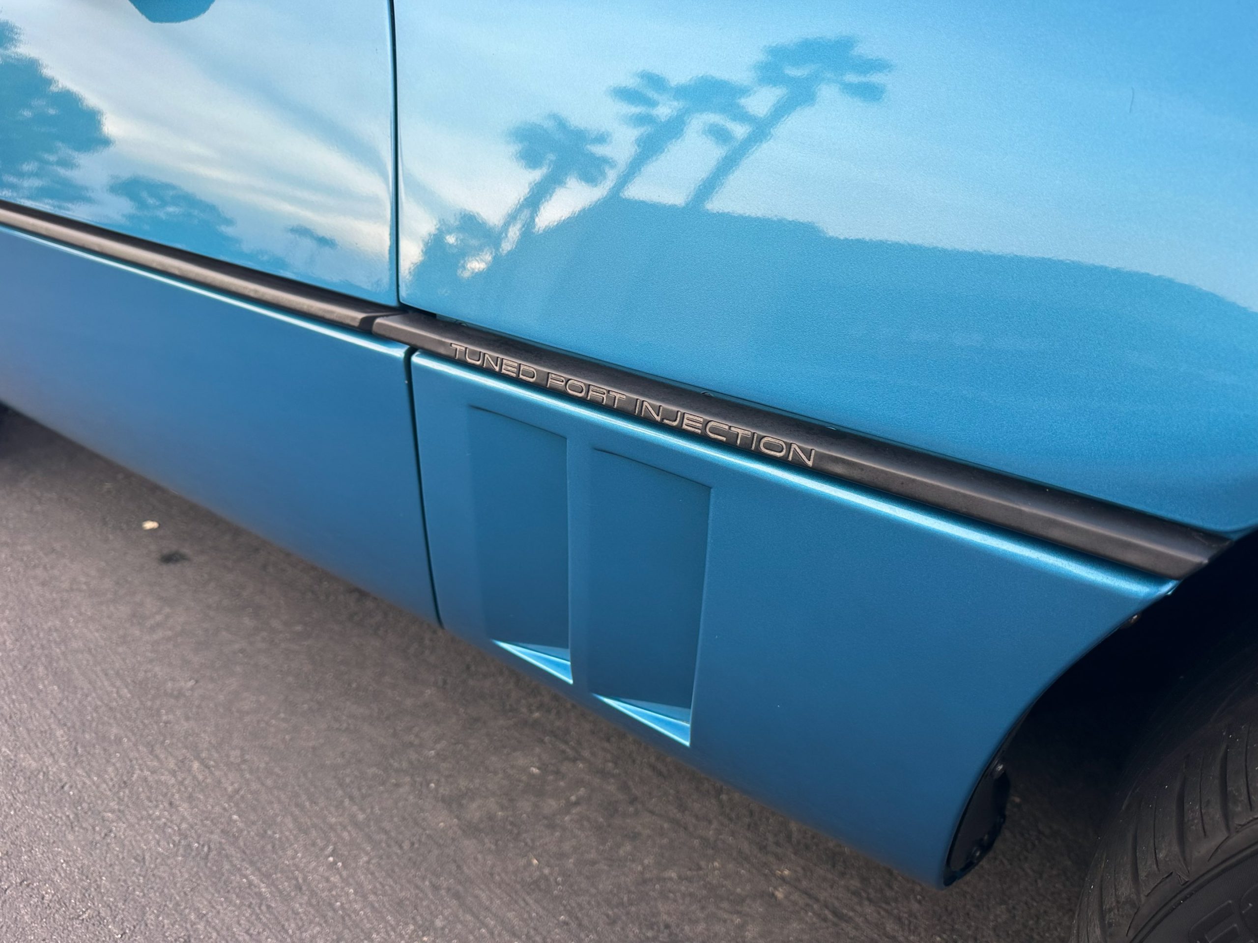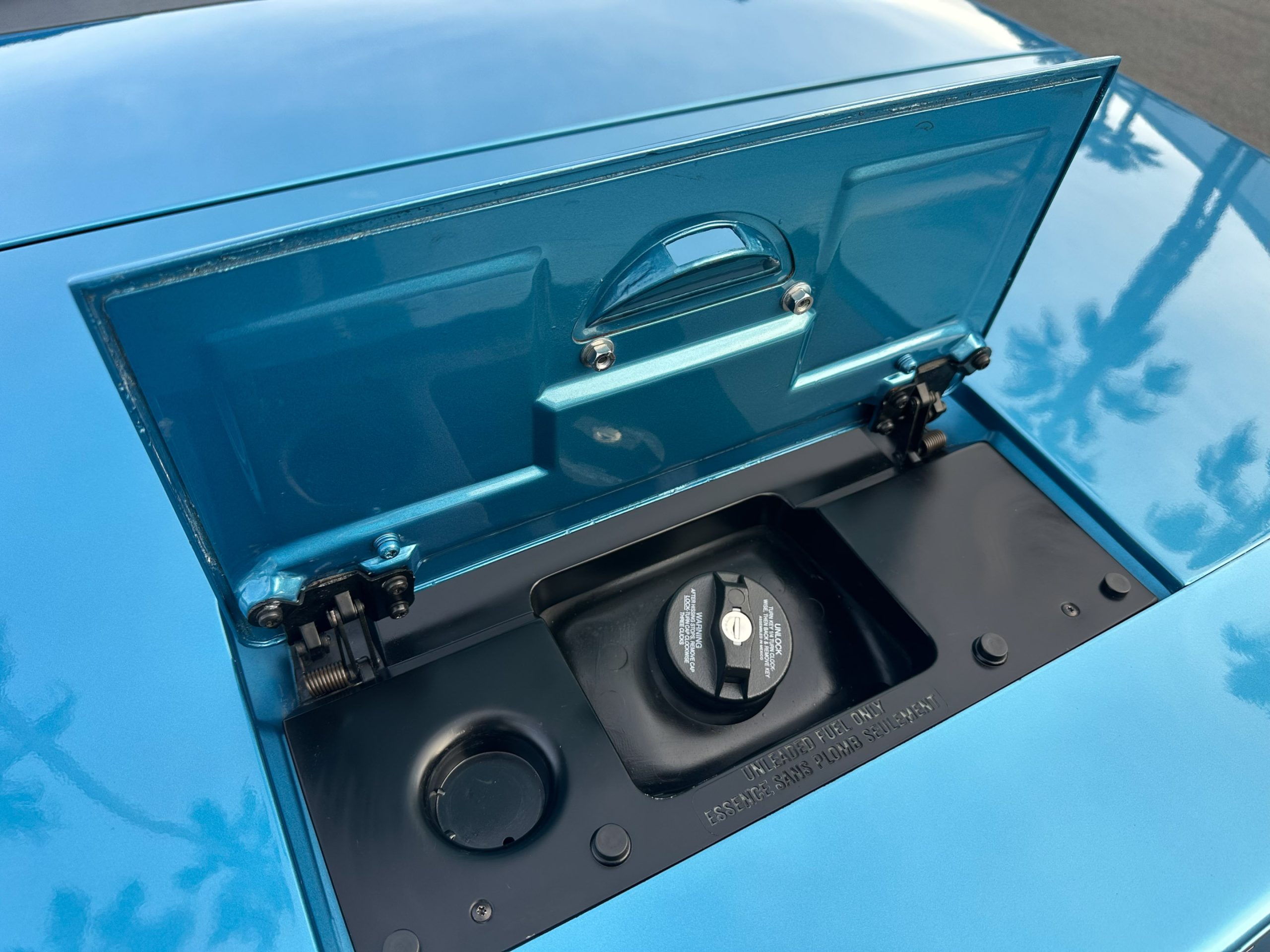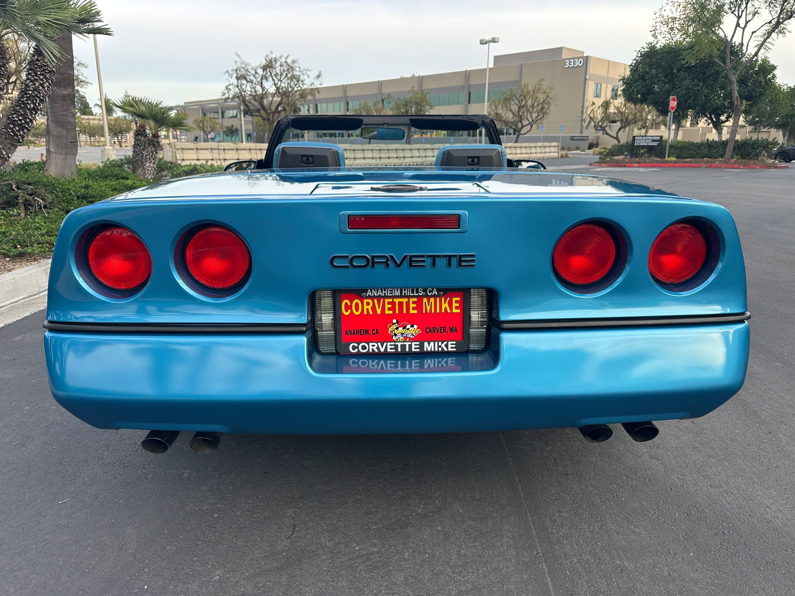 Finished in Medium Blue Metallic over Blue leather with a White soft top, this C4 is powered by a 5.7-liter L98 V8 paired with a four-speed automatic transmission and a limited-slip differential.