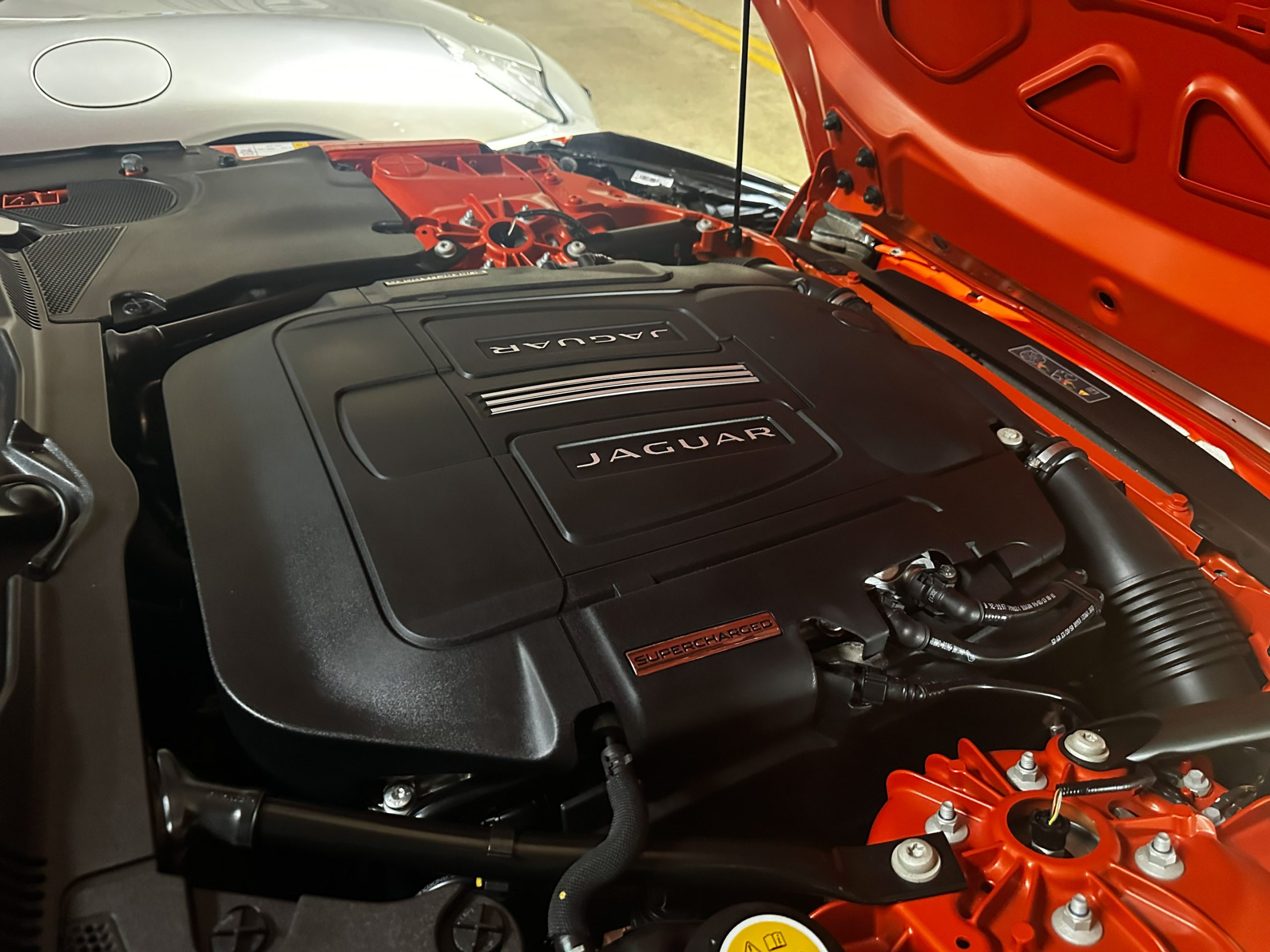 Firesand Orange w/Jet interior, 5.0L/495hp Supercharged V8, 8-speed paddle-shift automatic transmission.